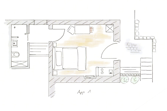Nevertheless, everything is there to feel comfortable at once: a fully equipped super-modern kitchen with an espresso machine, a flat screen TV, W-LAN, a small safe, a desk and an elegant bathroom with a shower.